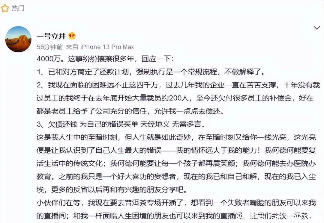 除了欠债以外,他之前还拖过员工的工资。总的来看,不少人都觉得,李亚鹏挺自我,先照顾自己,后关心别人,也逐渐变成了个老赖。有人说他做那么多生意纯粹是出于情怀,可实际上却让别人为他的情怀买单。