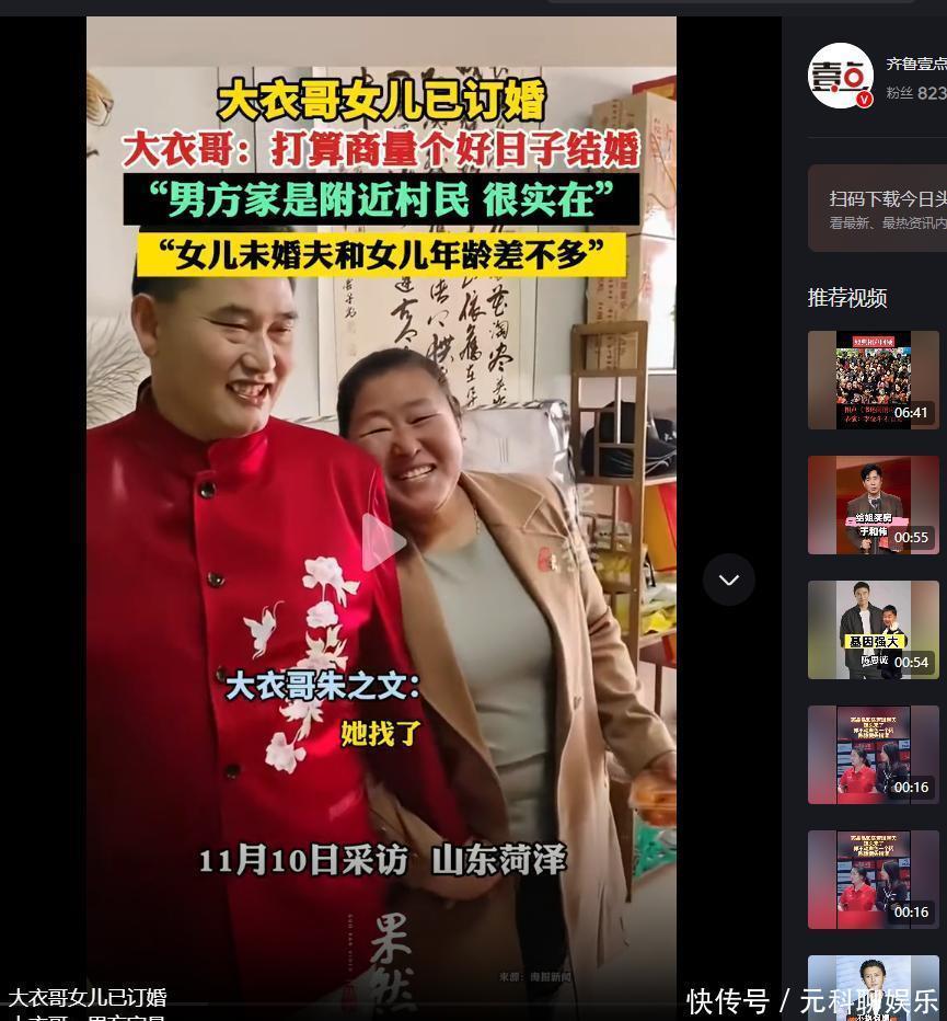 参考资料:齐鲁壹点,2025-11-12,“大衣哥女儿已订婚,南方是附近村民很老实”