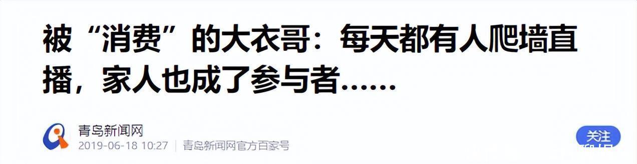 青岛新闻网,2019-06-18,被消费的大衣哥,每天都有人爬墙直播,家人也成了参与者……